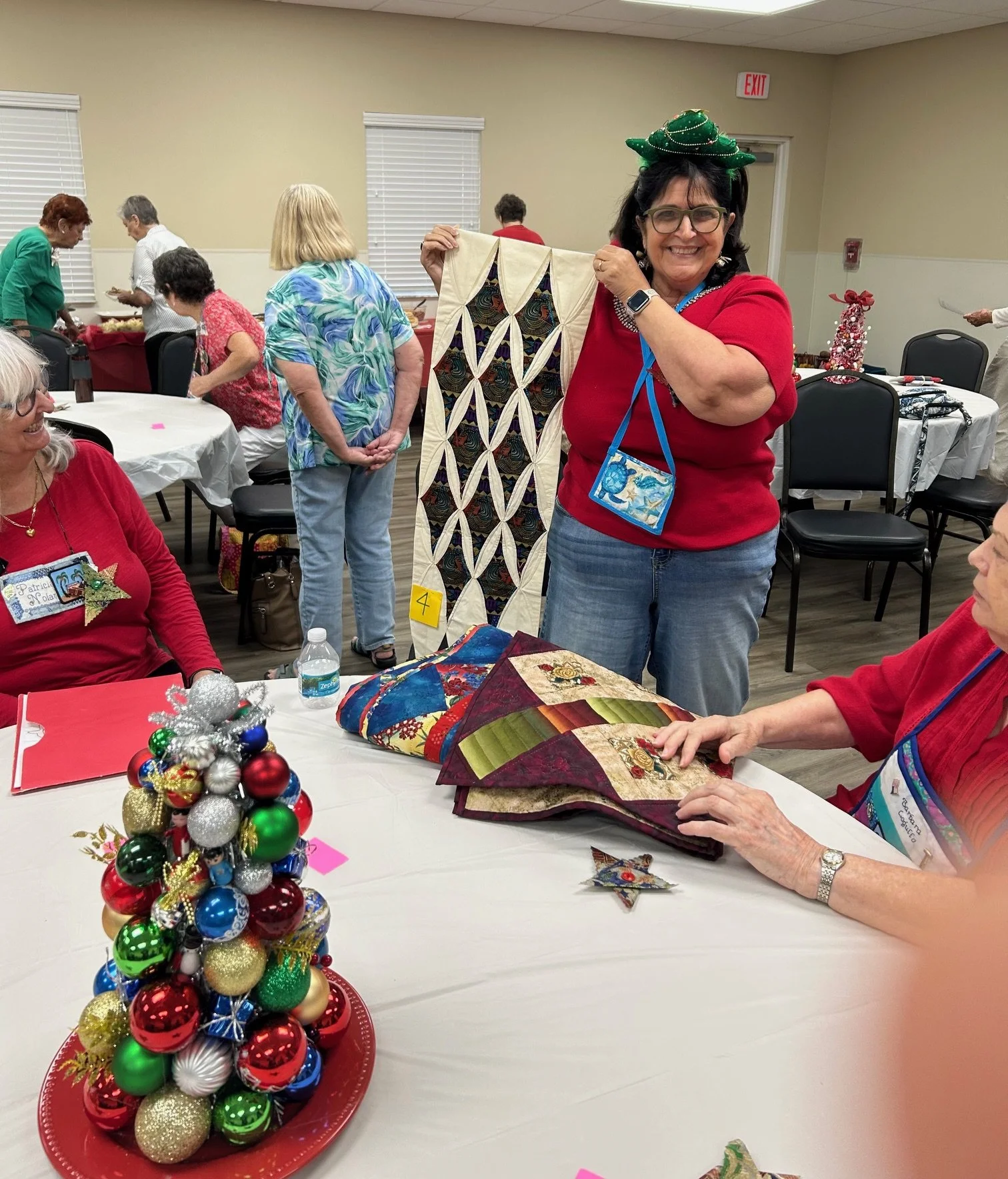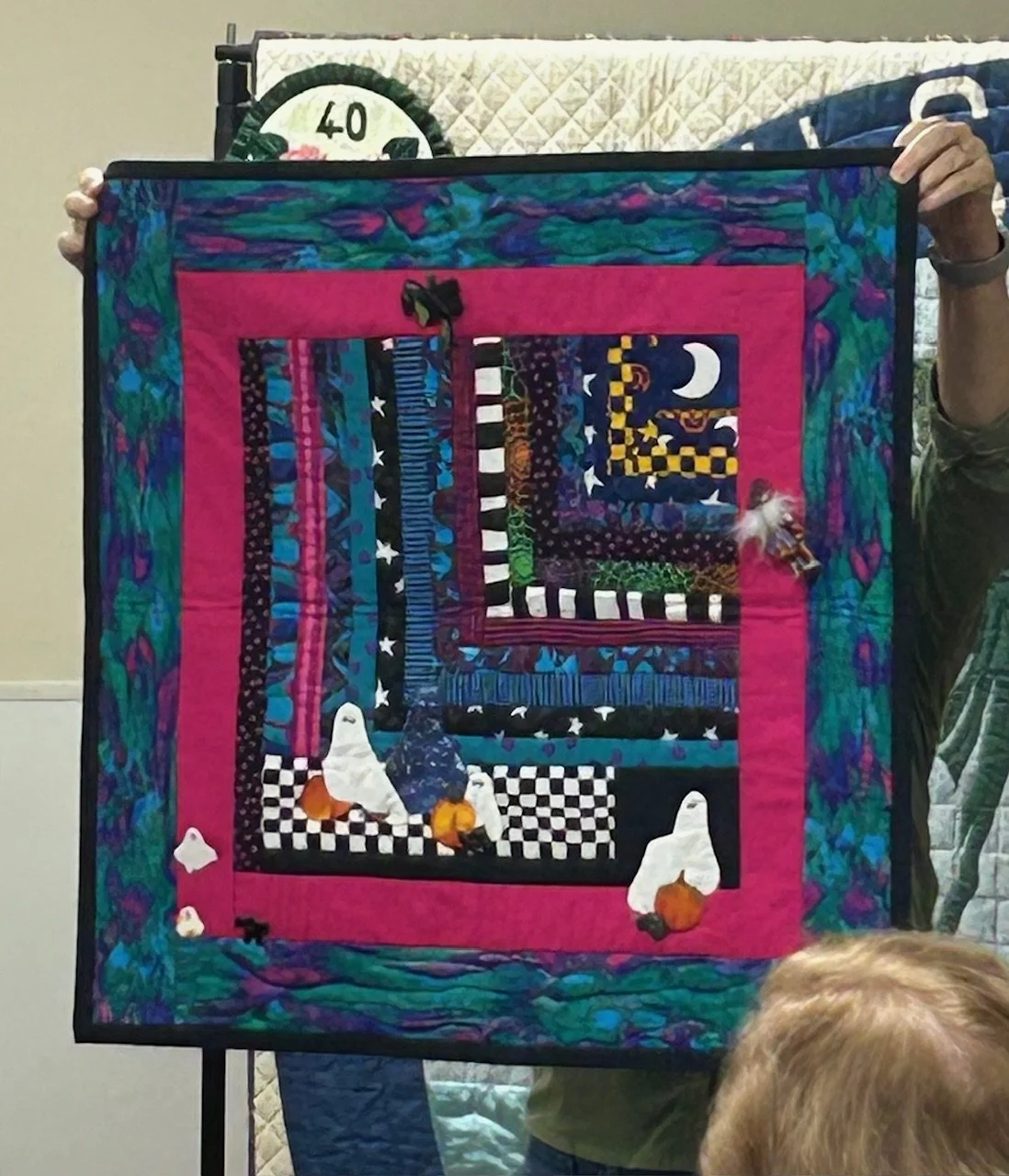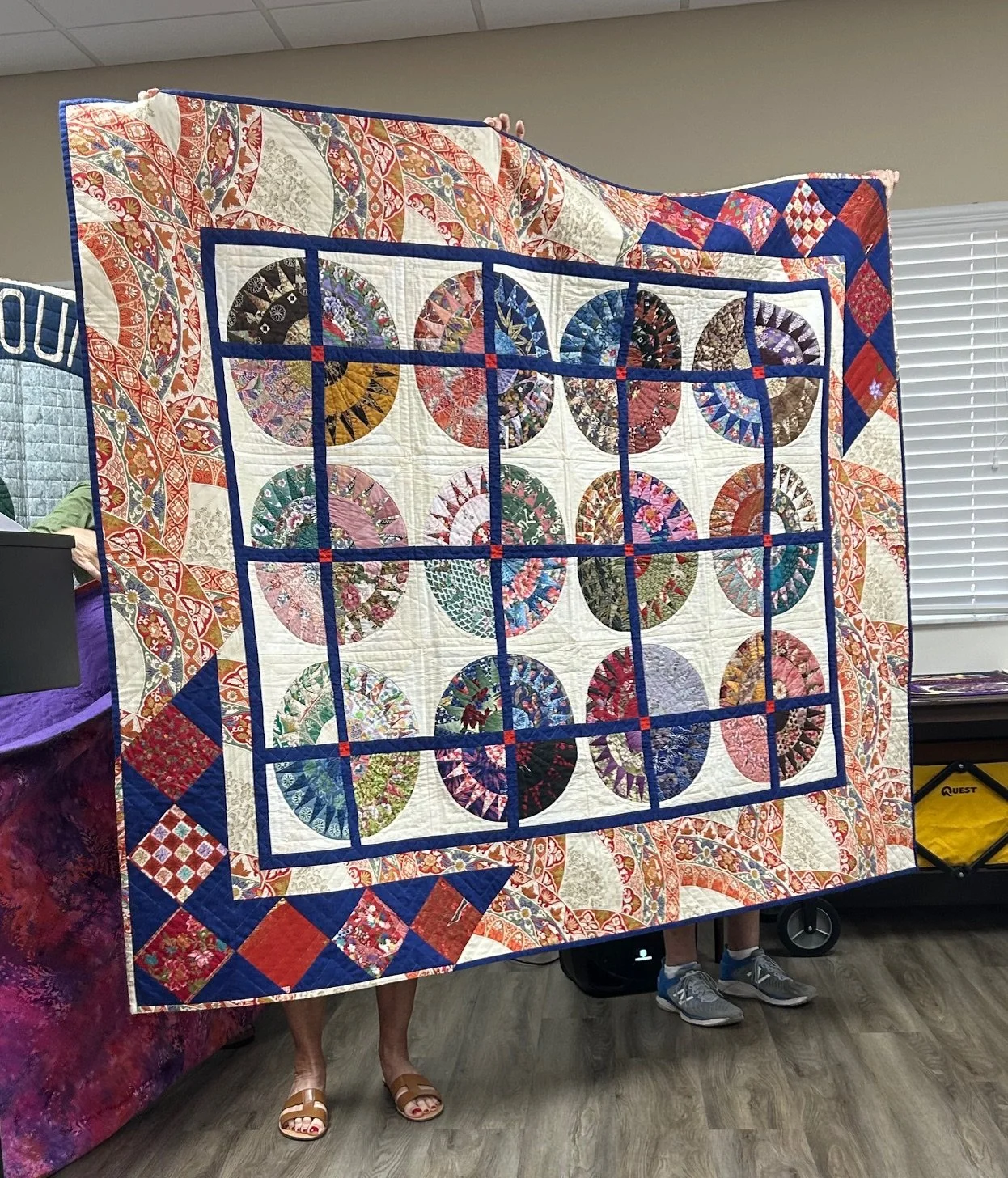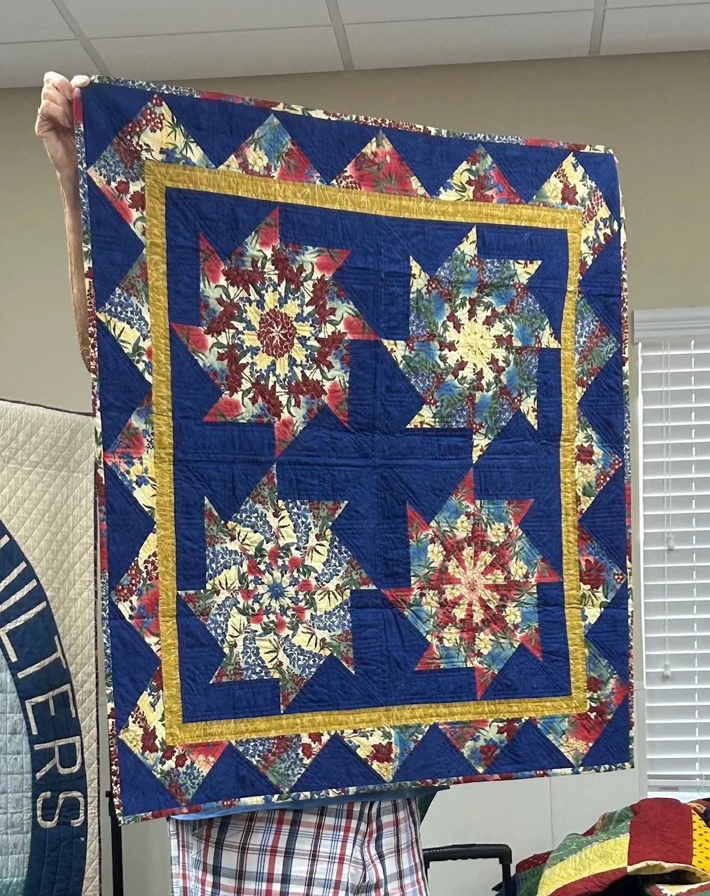 Karen Moore holds the quilt example for our upcoming January 2025 workshop • Saturday, 12/7