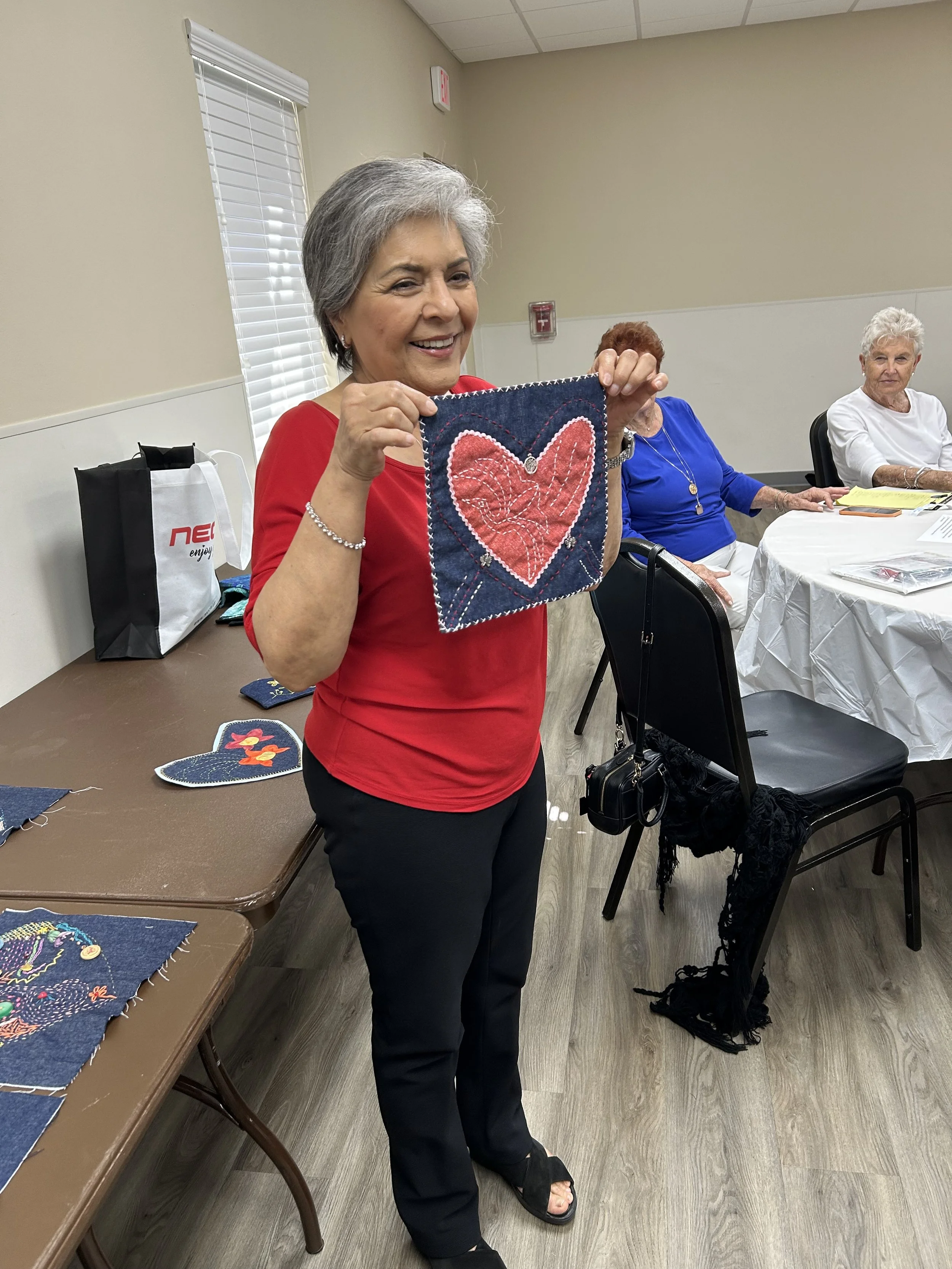 Quilting artist & teacher, Mary-Jeanine Ibarguen, presenting the program at our guild meeting • Saturday, 1/11/25