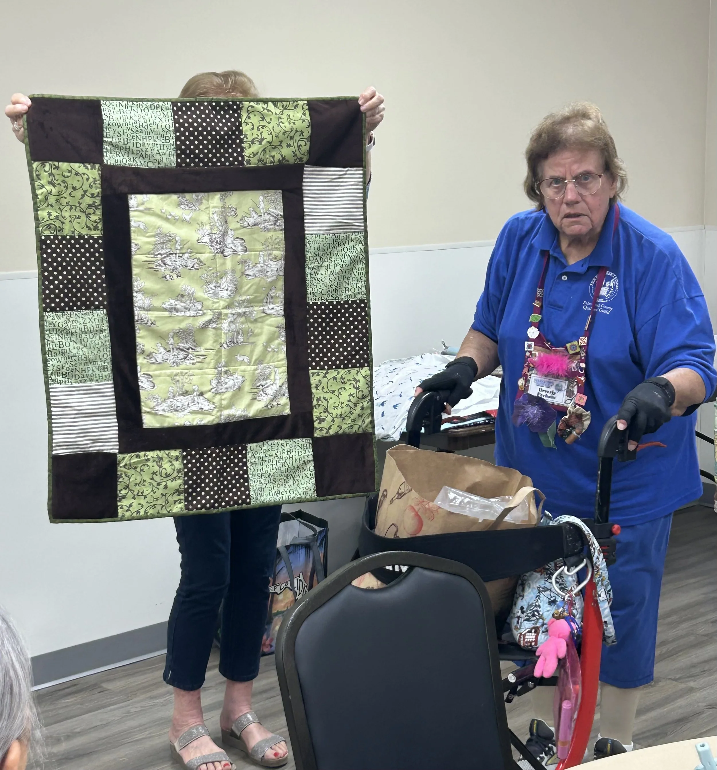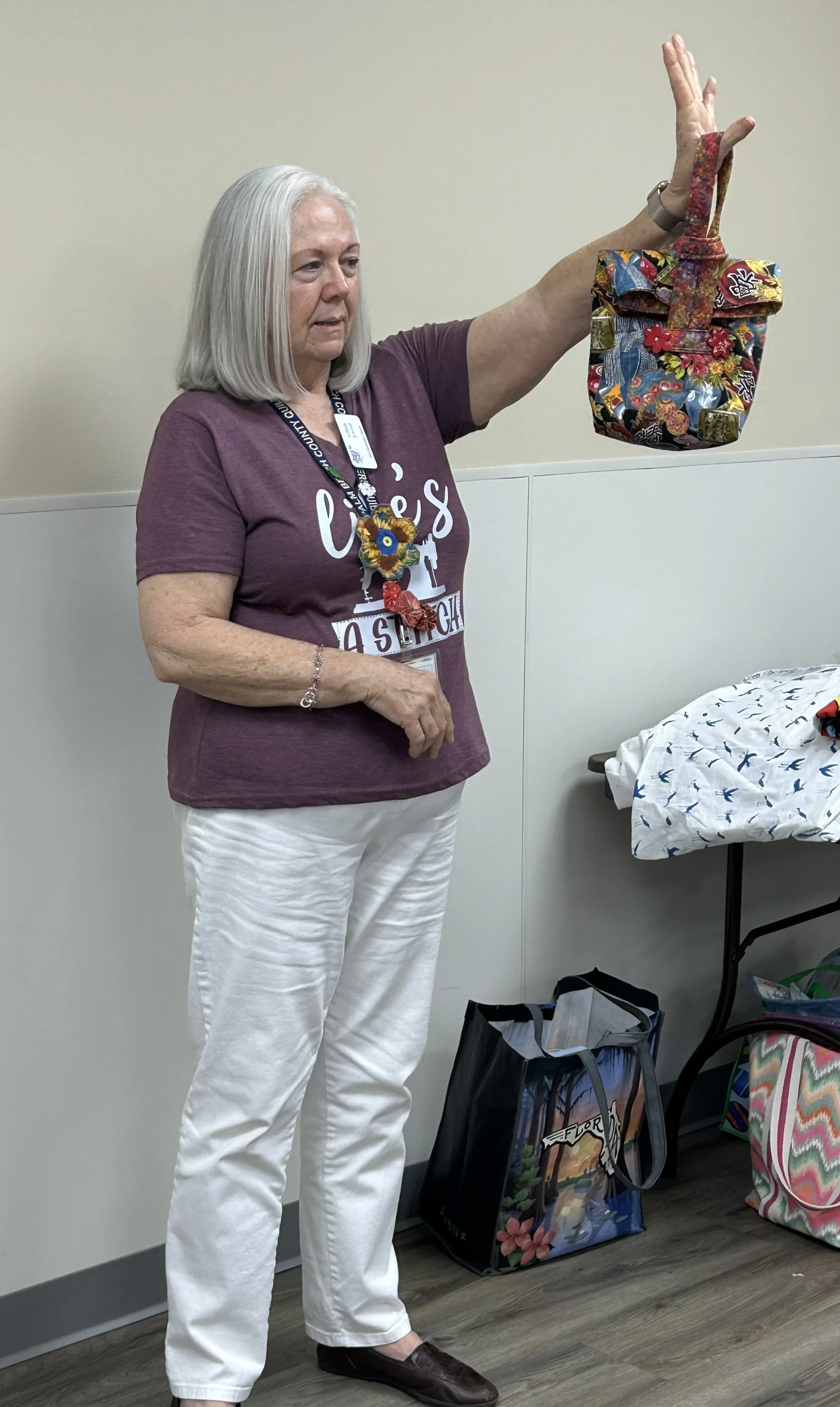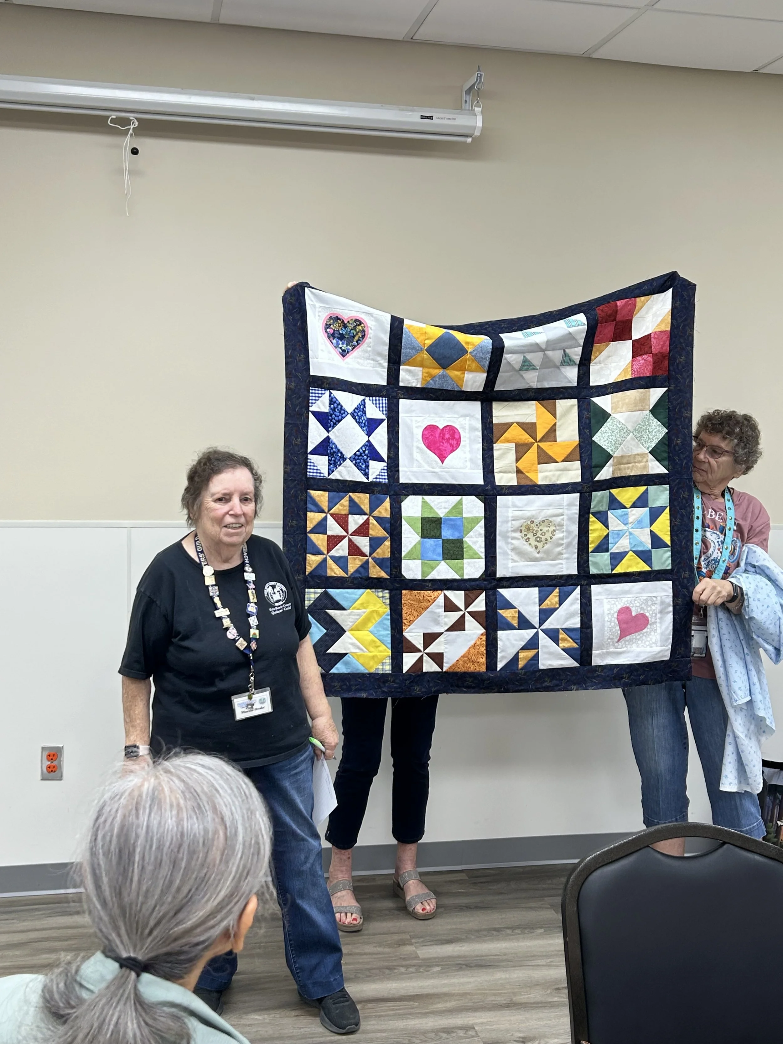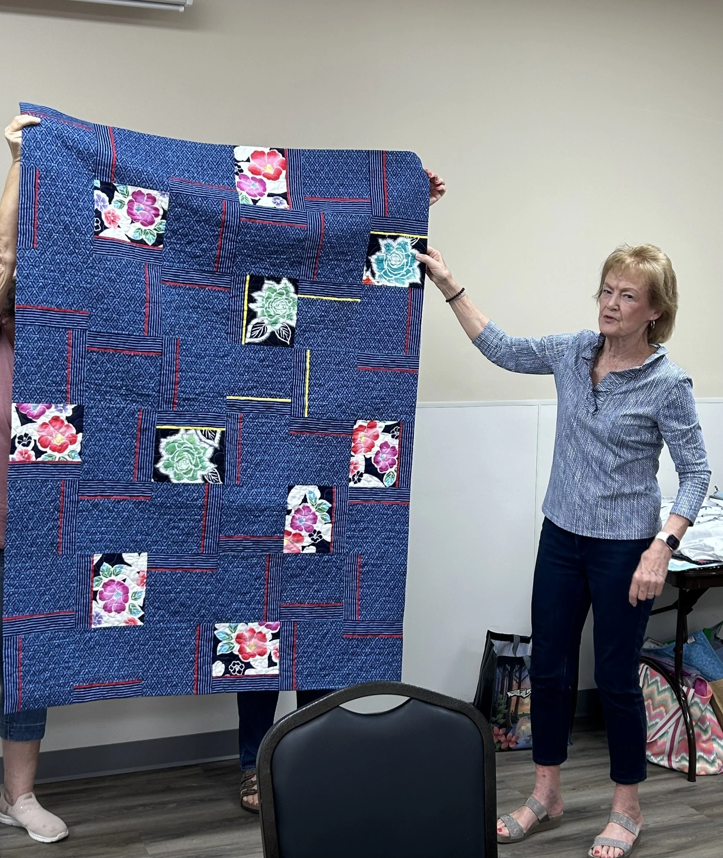 Vivian sharing a community outreach quilt – 10/26/2024 • Guild Meeting