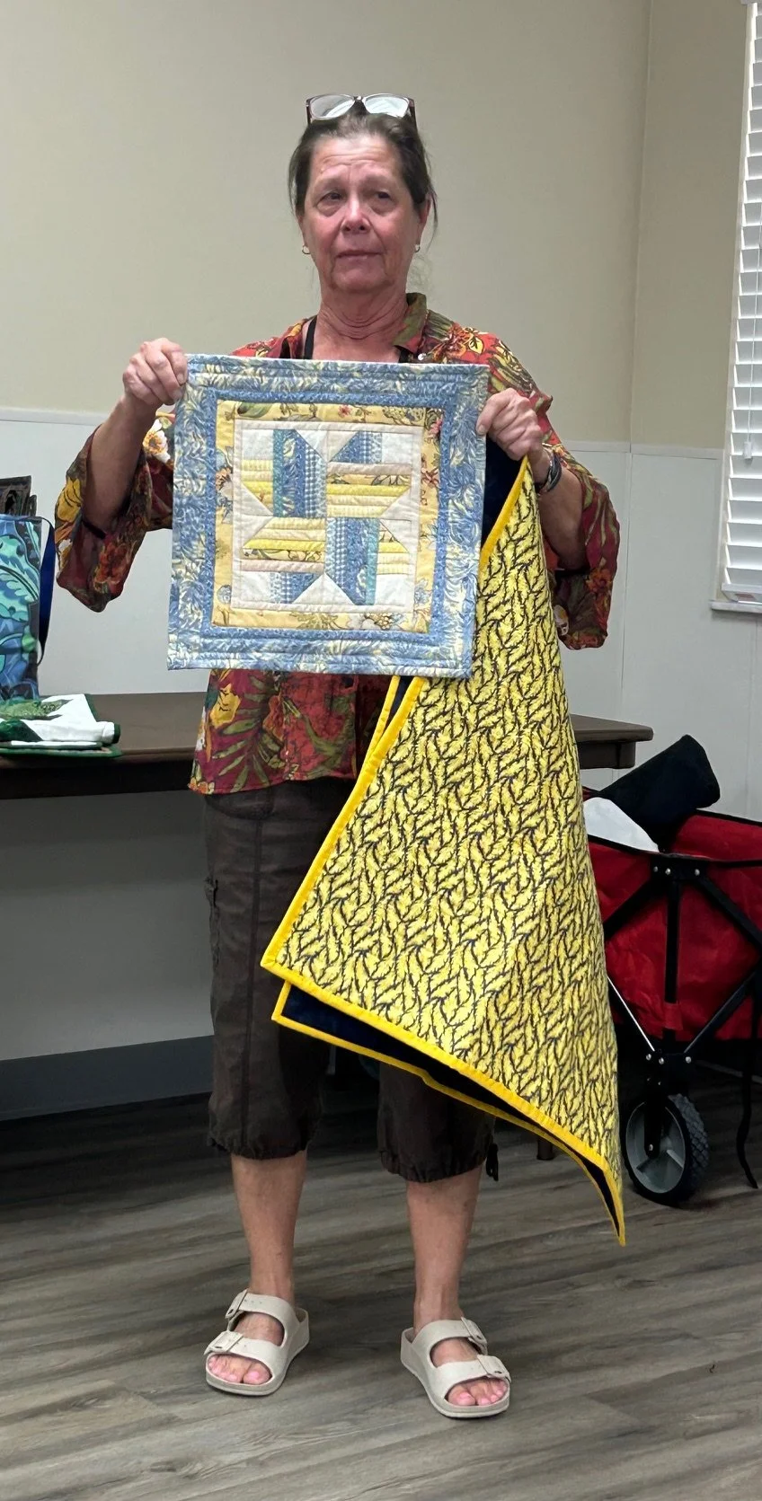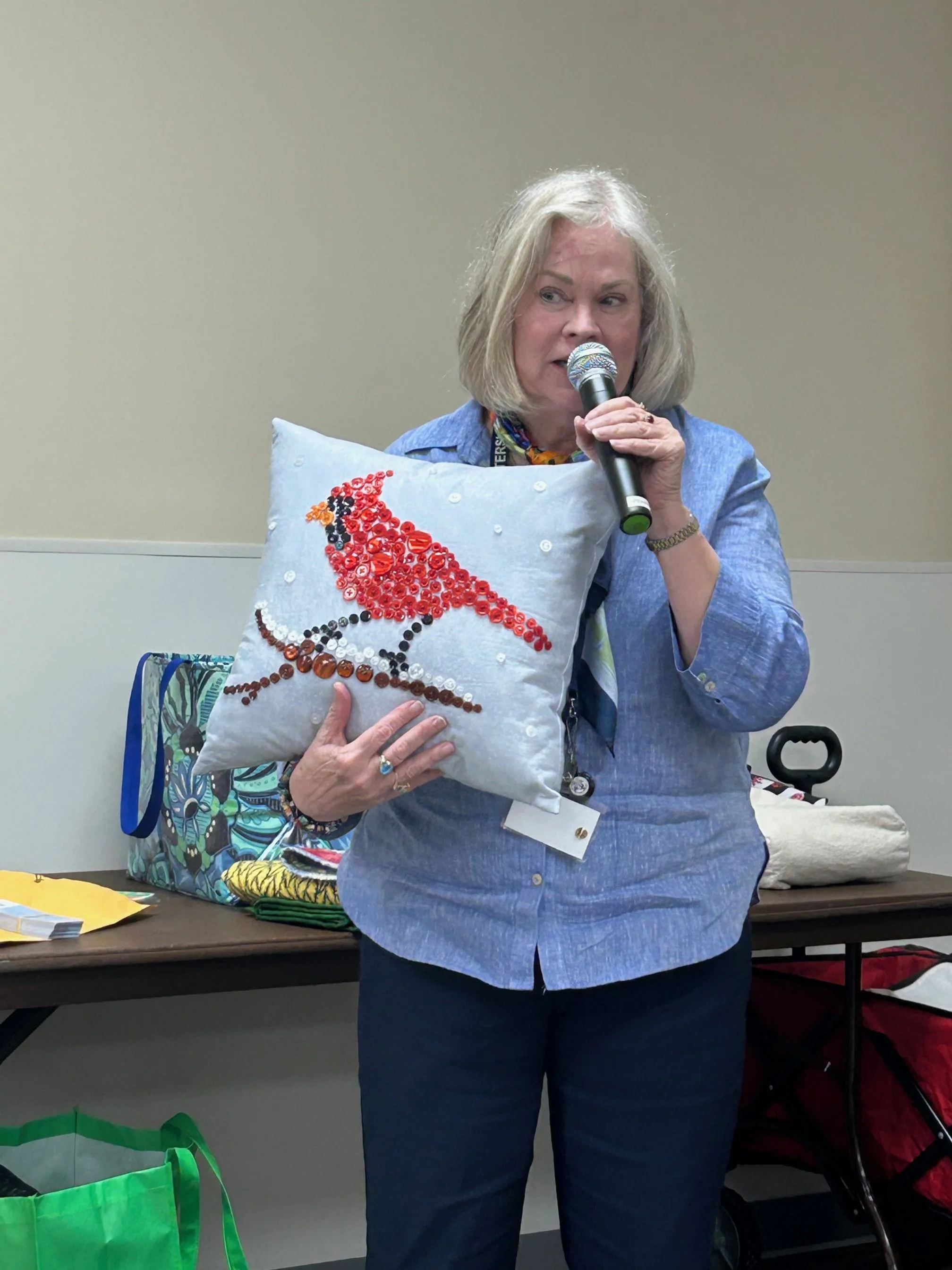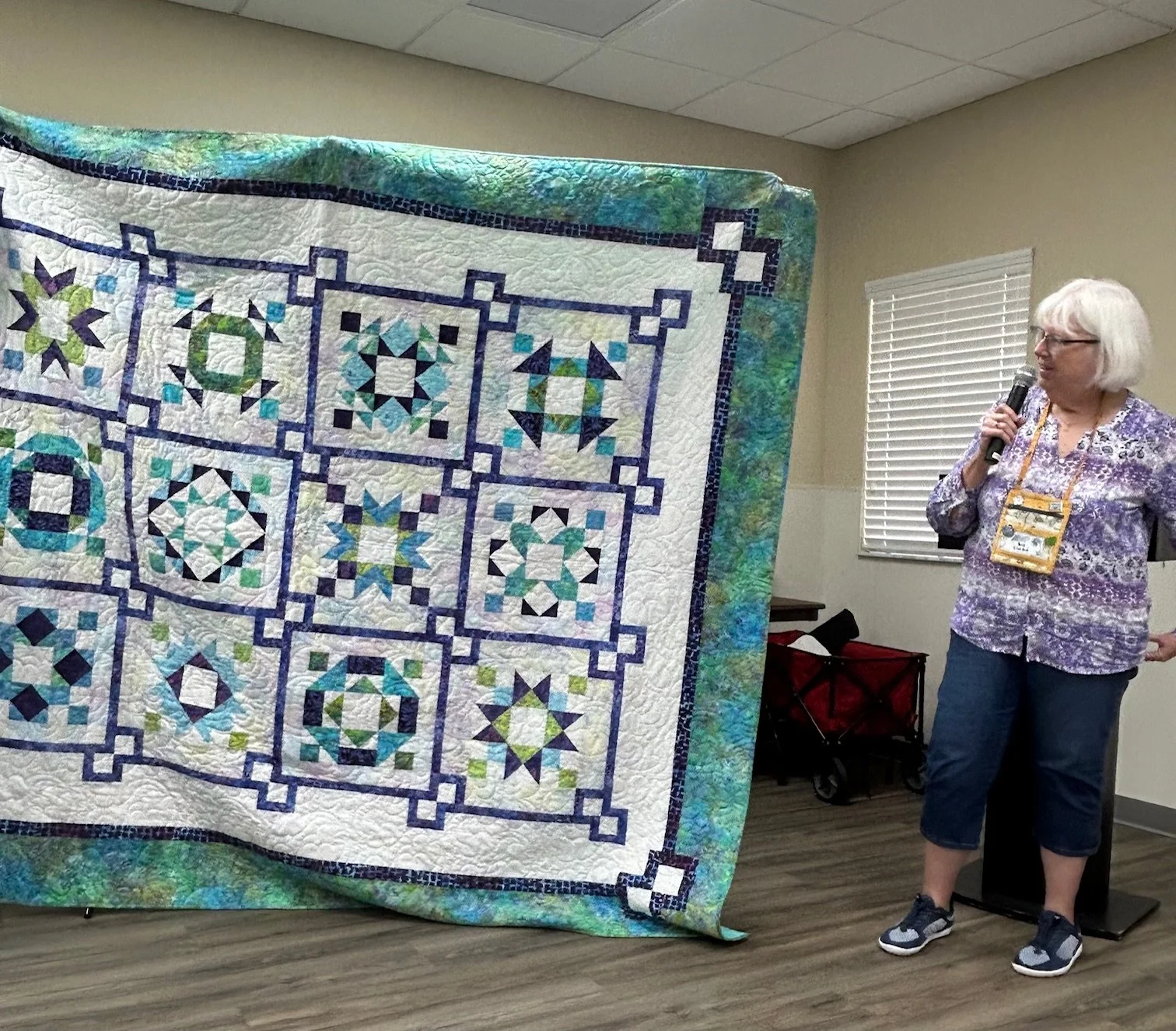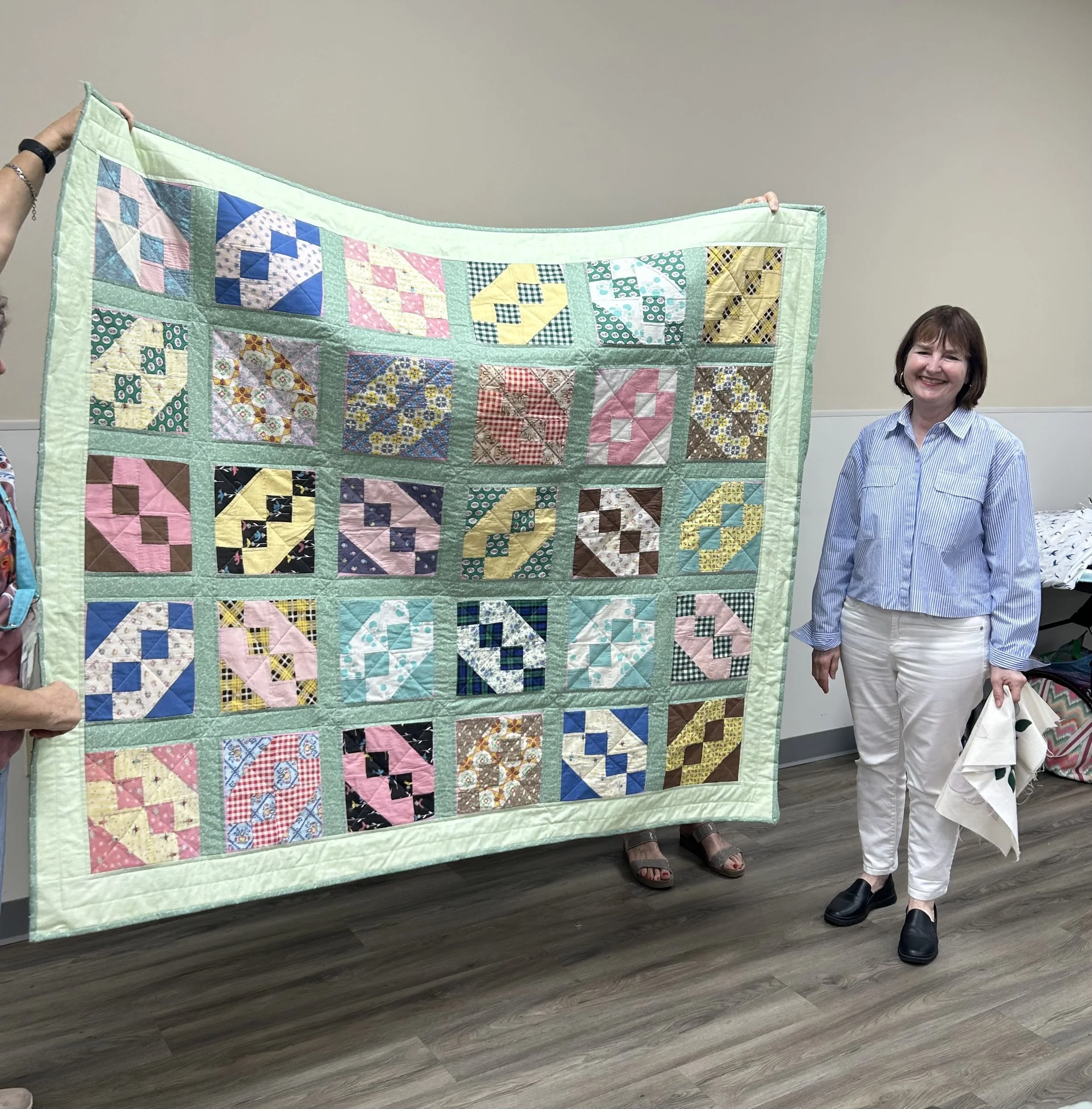 Vivian sharing a community outreach quilt – 10/26/2024 • Guild Meeting