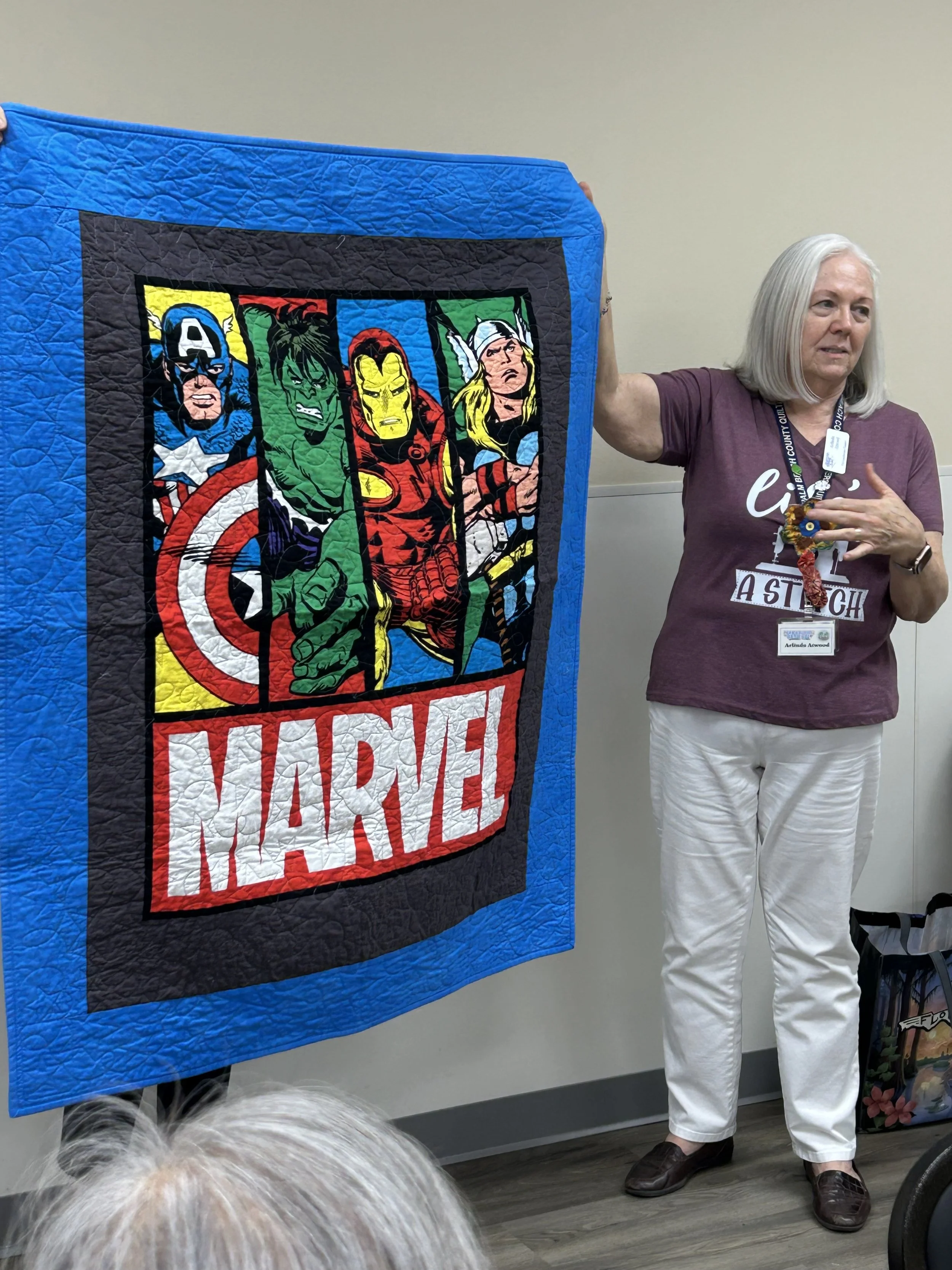 Karen sharing a quilt she made to gift her nephew – 10/26/2024 • Guild Meeting